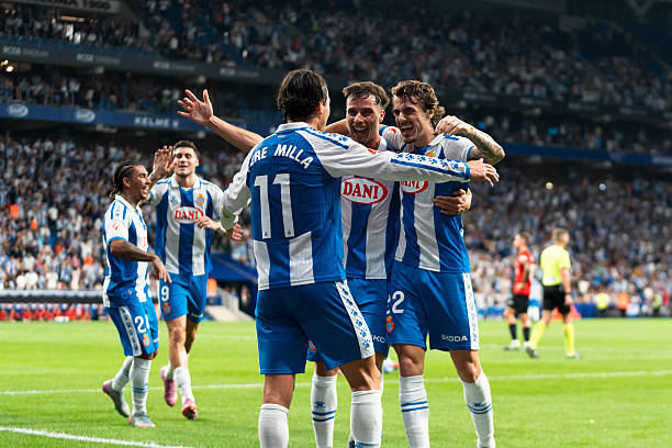 Players of RCD Espanyol celebrate a goal by Pere Milla during the LaLiga EA Sports match between RCD Espanyol and RCD Mallorca at RCDE Stadium in Barcelona, Spain, on September 15, 2025. (Photo by Ruben De La Rosa/NurPhoto via Getty Images)