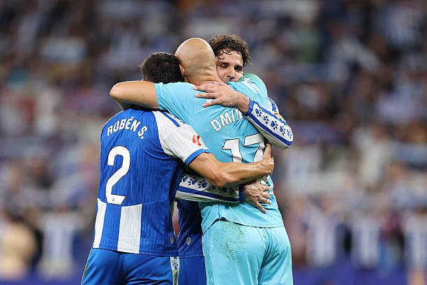 BARCELONA, SPAIN – SEPTEMBER 15: Ruben Sanchez, Leandro Cabrera, Marko Dmitrovic of RCD Espanyol de Barcelona celebrate after winning the LaLiga EA Sports match between RCD Espanyol de Barcelona and RCD Mallorca at RCDE Stadium on September 15, 2025 in Barcelona, Spain. (Photo by Judit Cartiel/Getty Images)