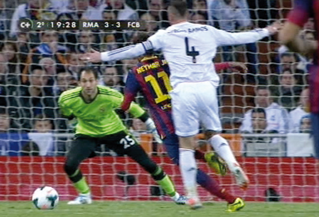 Tenemos muchos ejemplos: en la temporada 2013-2014, el Madrid perdió en el Bernabéu 3-4 con mucha polémica. Cuando el partido iba 3-2 a favor del equipo blanco a falta de 15 minutos para el final, se pitaron dos penaltis inexistentes en contra del Madrid: uno de Carvajal a Neymar, en el que el jugador ni lo toca, y otro de Ramos a Neymar, donde Ramos solo se cruza en su camino pero no lo toca, y encima lo expulsaron por ser el último hombre.