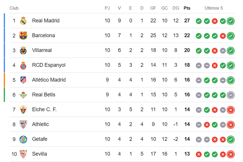 El Real Madrid-FC Barcelona de Liga en el Santiago Bernabéu ha dejado la tabla de clasificación de la siguiente manera: