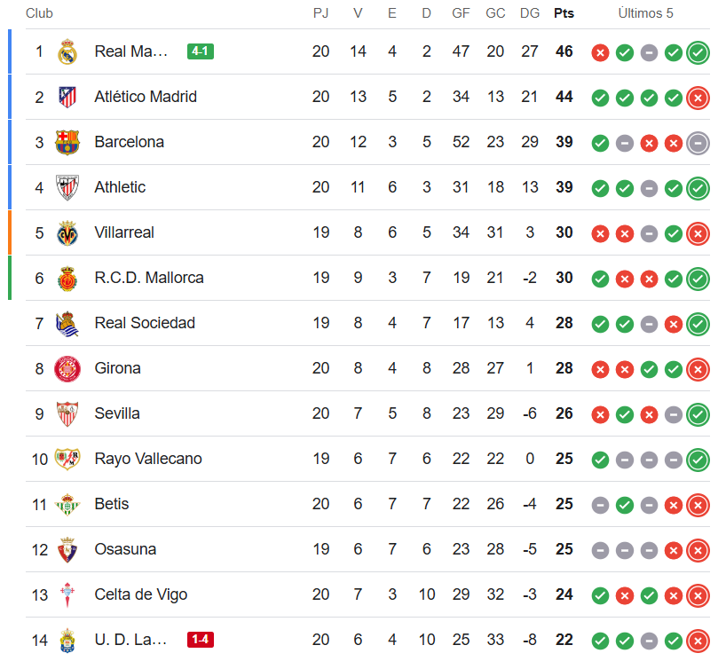 Así queda la tabla de la Liga: el Madrid golea y asalta el liderato