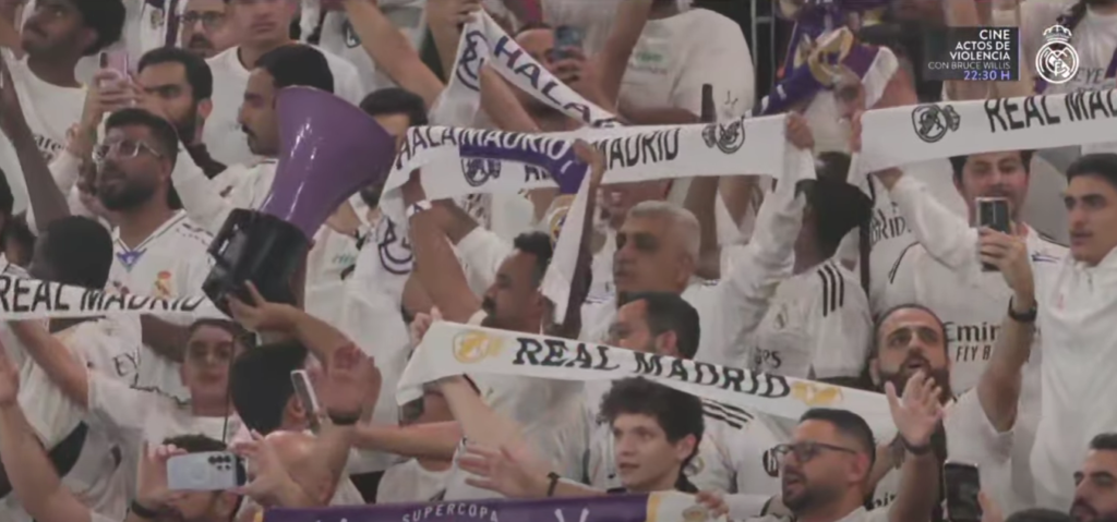 El de los rojiblancos, prácticamente, pasó desapercibido, mientras que el del Real Madrid se entonó a capela por todo el estadio y resonó en toda Arabia Saudí emulando una noche grande de fútbol en el Santiago Bernabéu.