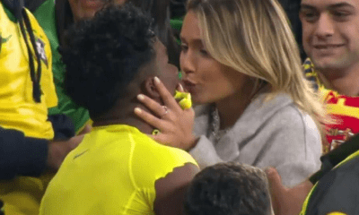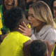 Nada más acabar el partido, Endrick se dirigió a la grada donde se encontraba su novia, Gabriely Miranda, para regalarle su camiseta. Se dieron un abrazo...