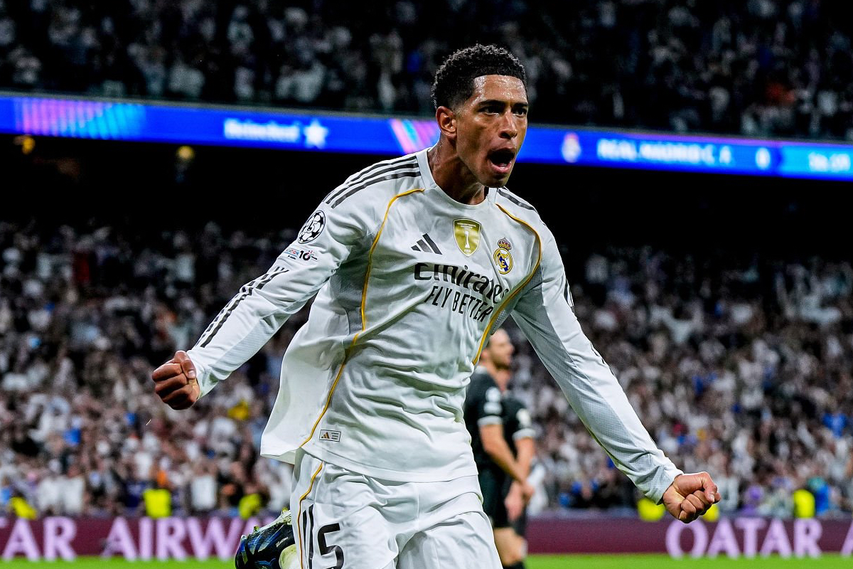 MADRID, SPAIN - OCTOBER 22: Jude Bellingham of Real Madrid celebrates his goal during the UEFA Champions League 2025/26 League Phase MD3 match between Real Madrid C.F. and Juventus at Estadio Santiago Bernabeu on October 22, 2025 in Madrid, Spain. (Photo by Image Photo Agency/Getty Images)
