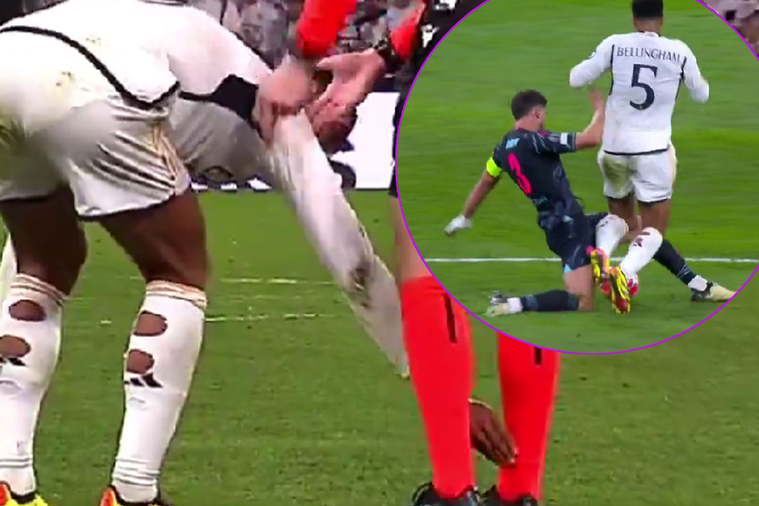 El central portugués del City estaba apercibido de tarjetas. Si veía una cartulina amarilla, podría jugar la vuelta en el Etihad, y bien que la mereció. Le hizo una durísima entrada a Bellingham, que fue merecedora de tarjeta. Fue a cazar al inglés a la altura del tobillo pudiéndole hacer mucho daño a Bellingham.