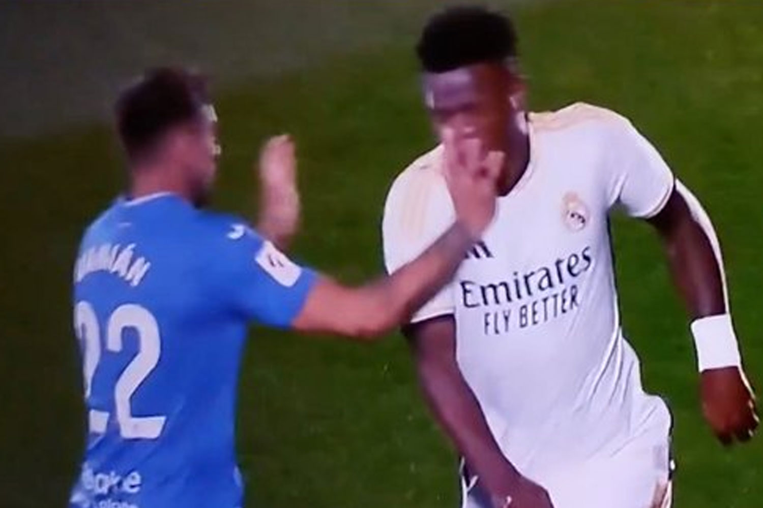 El defensor del Getafe, en la primera jugada del encuentro, le pegaba un manotazo a Vinícius Júnior, sin balón, y se iba totalmente impune. Una acción que debió revisar el VAR y por la que deberían haber mostrado la cartulina roja… pese a ser el minuto 1.