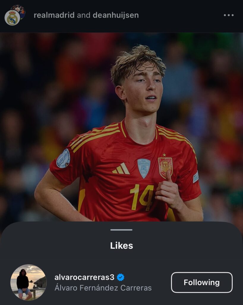 Álvaro Carreras no se cortó, ni un pelo, al ver el anuncio oficial de Dean Huijsen como nuevo jugador del Real Madrid.