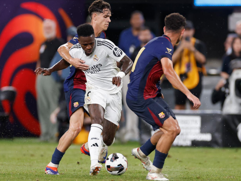El segundo partido fue contra el FC Barcelona en Nueva Jersey. El Barça ganó 2-1 en un resultado algo engañoso, ya que el equipo blanco dominó gran parte del partido. Le anularon un gol legal a Güler, quien fue el mejor del partido, y también le hicieron un más que posible penalti a Endrick. Con la entrada de Vinícius, el Madrid tuvo claras ocasiones para empatar el partido. El brasileño volvió loca a la defensa azulgrana en los minutos que jugó, mostrando su plena forma en la pretemporada.