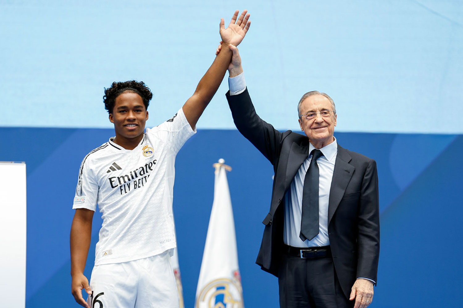 A posteriori, tomó la palabra Florentino Pérez, quien le dio la bienvenida a Endrick y destacó todos los logros del joven delantero en el Palmeiras, resaltando que ha sido el único jugador en la historia del club que ha ganado títulos en todas las categorías del equipo carioca.