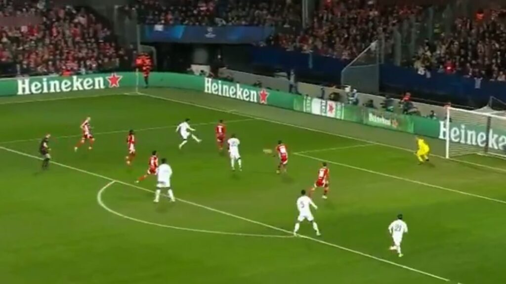 La megafonía sin poder hacer sonar el himno de la Champions League, un espectacular bengaleo cubriendo de humo todo el estadio, y el Brest-Real Madrid tuvo que retrasarse unos minutos por ello. A la que empezó el encuentro, a los madridistas le costó entrar en rodaje y únicamente lo probaban en jugadas aisladas Mbappé y Rodrygo, ambos por la izquierda, aunque sin inquietar a Bizot. Hasta el 27′, por una genialidad de Mr. Champions.