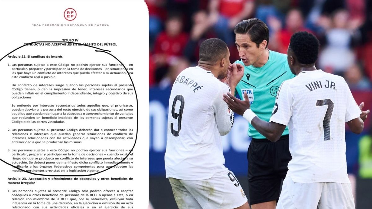 Con lo cual, con este código ético, Munuera Montero, presuntamente, está incumpliendo dicho código, ya que hay un caso de conflicto de intereses. En esas se está estudiando. Con el código en la mano, no podría arbitrar más. Veremos en qué quedará todo este tema.