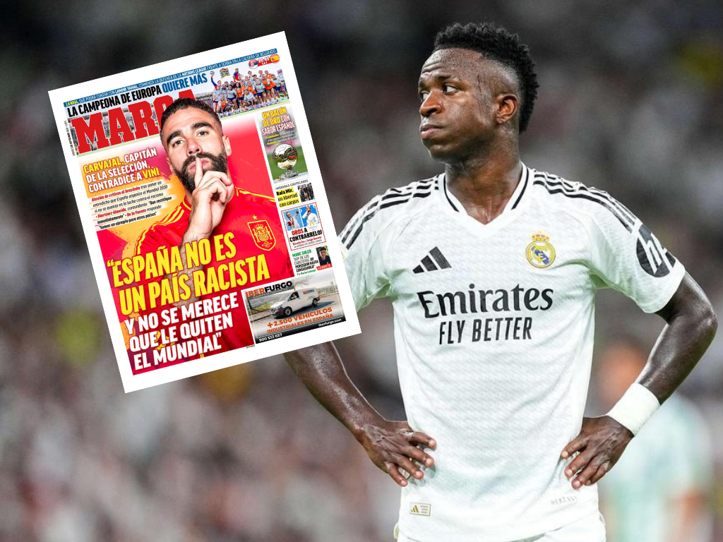 Carvajal defendió a Vini Jr. por el caso de racismo y la portada del Diario Marca falsea la realidad. Utiliza al español para hacer «callar» al brasileño.