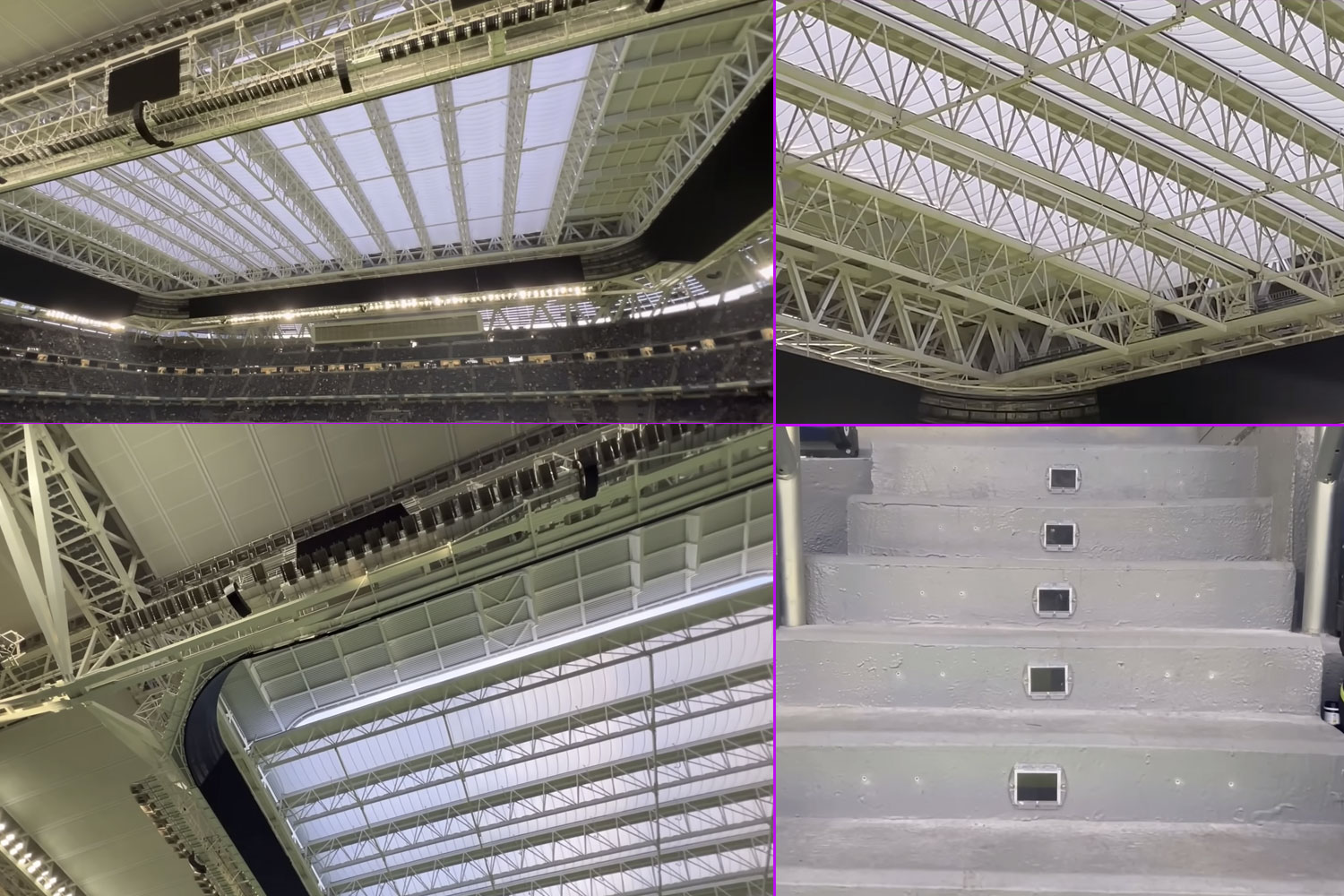 Lo que sí que encendió fue el tema de las luces LED, tal y como se aprecia en el vlog grabado por el citado youtuber. Primero con las luces de cada vomitorio, las que son obligatorias en los distintos conciertos y eventos, y también un pequeño tramo de las distintas cerchas, tal y como se había anunciado.