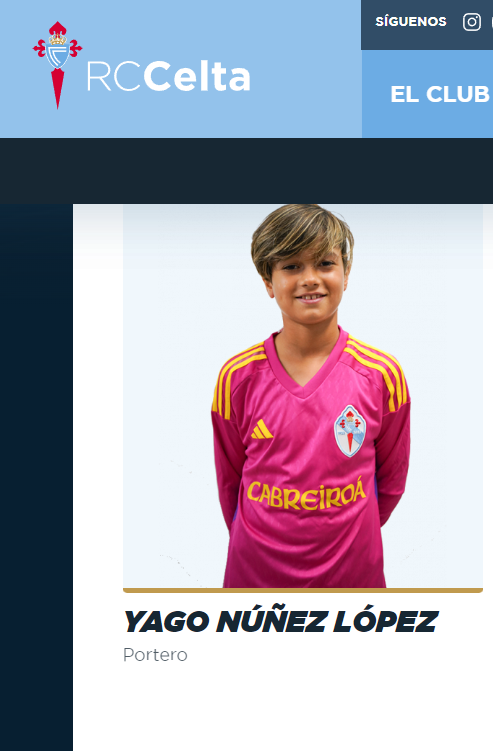 Dos años después del fichaje de Bryan Bugarín, que causó mucha polémica entre ambos clubes, el equipo blanco ha vuelto a pescar en la cantera del Celta y ha fichado al portero del Alevín B del Celta de Vigo, Yago Núñez, quien está considerado como uno de los tres mejores porteros de su edad.