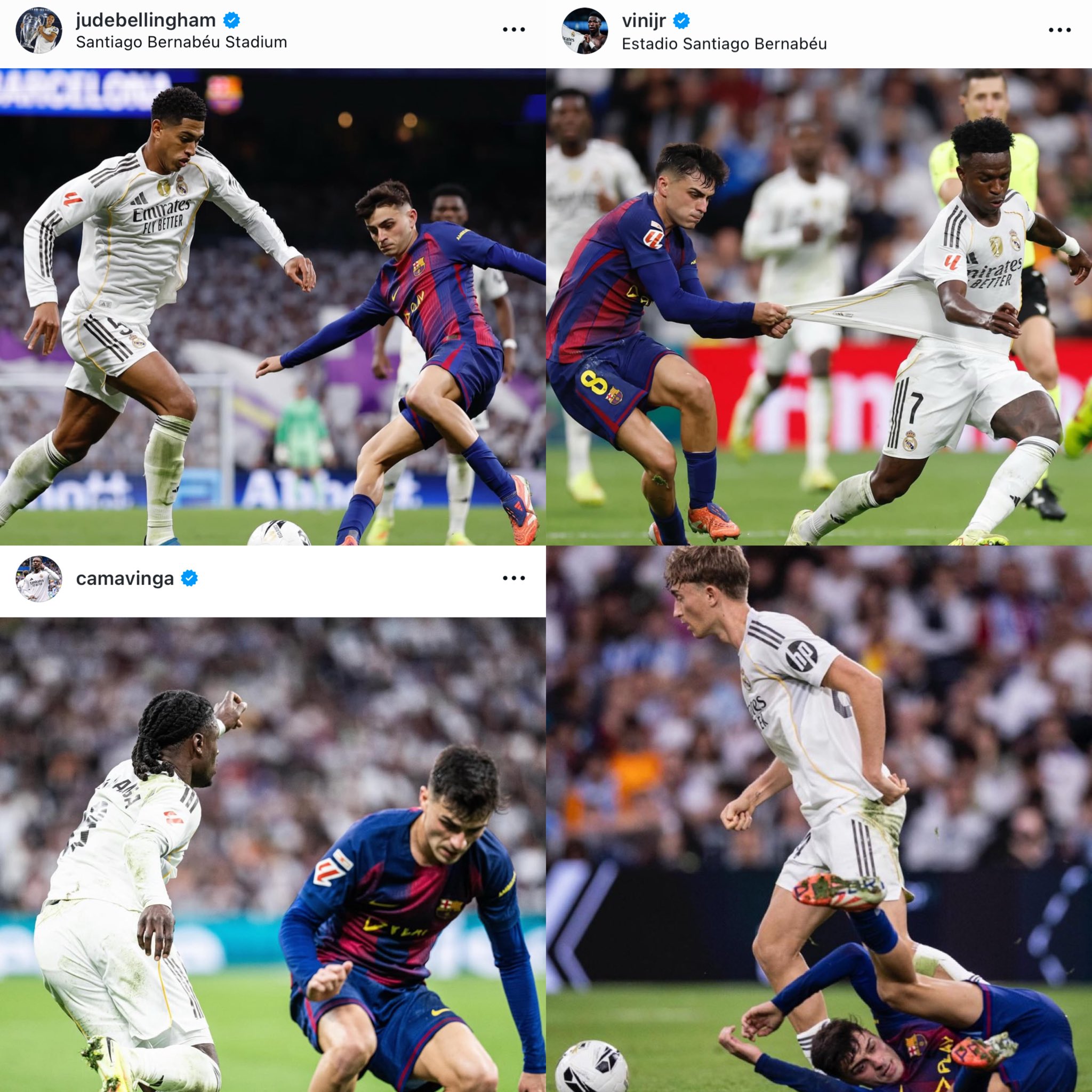 Tras ganar al Barça en el Clásico, a través de las redes sociales, se inundaron de posts del partido en los que varios jugadores del Real Madrid celebraron el triunfo colgando imágenes en la que se ve a Pedri corriendo detrás del balón o por el suelo. Una humillación en toda regla y que demuestra que también se la tenían jurada al canario.