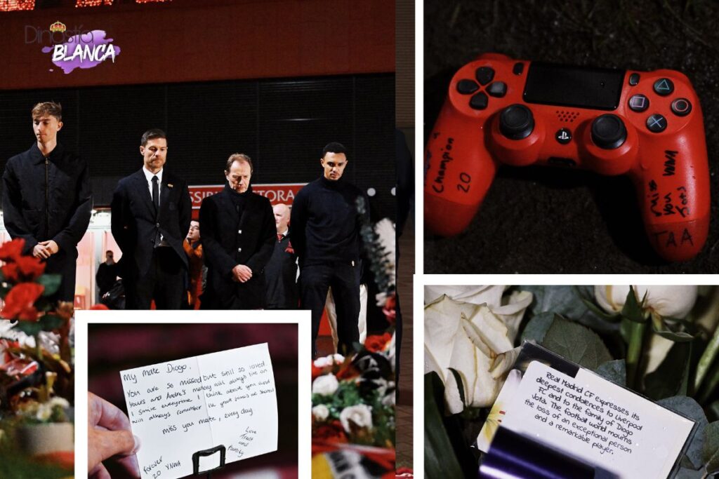 Las cámaras de The Athletic captaron el sentido homenaje de Emilio Butragueño, Xabi Alonso, Dean Huijsen y Trent Alexander-Arnold, desplazados hasta Anfield Road, para rendir tributo a Diogo Jota y a su hermano André Jota.