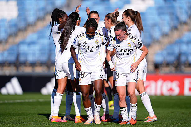 ​El partido comenzó con el Madrid presionando muy arriba, dificultando la salida del balón del Badalona y creando muchas ocasiones de gol: un remate de Bruun dentro del área que se estrelló en el palo, y un pase en profundidad de Linda Caicedo a Feller, cuyo remate lo paró Canales con una gran parada, al igual que un remate de cabeza de Bruun. En el minuto 25, un error en la salida del balón del Badalona lo aprovechó Linda Caicedo, que se fue de dos defensas, se internó en el área y de tiro cruzado batió a Canales para marcar el primer gol del Madrid.