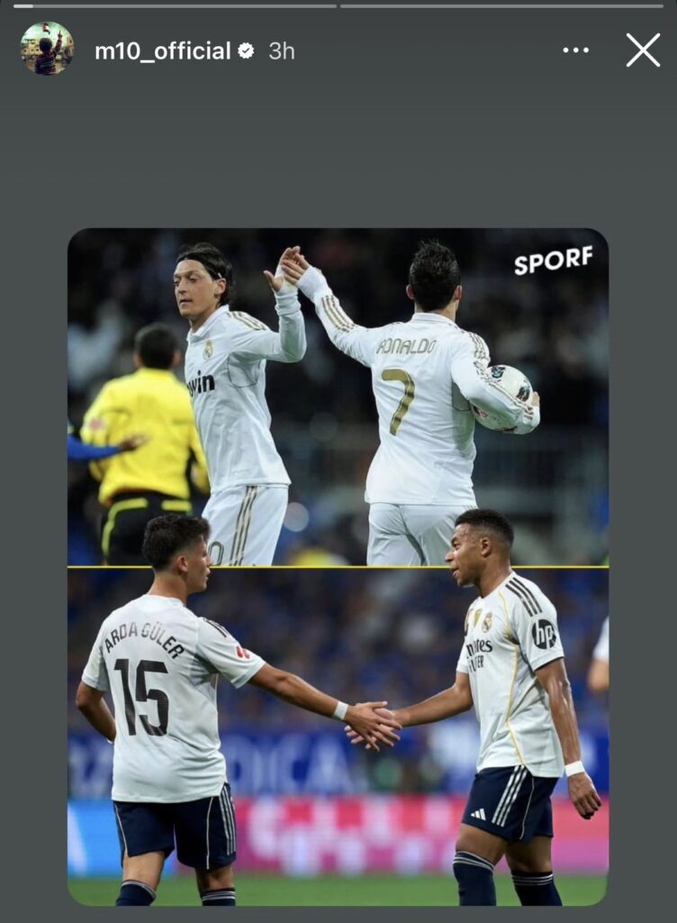 Del mismo modo, hace escasos días, el propio Özil compartió en su cuenta de Instagram una historia que comparaba la sociedad Güler-Mbappé con la suya con Cristiano, demostrando que incluso uno de los dos protagonistas de una de las sociedades más efectivas de la historia reciente del Real Madrid también es capaz de ver los atisbos que se asimilan con esta nueva sociedad conformada por Arda y Kylian.