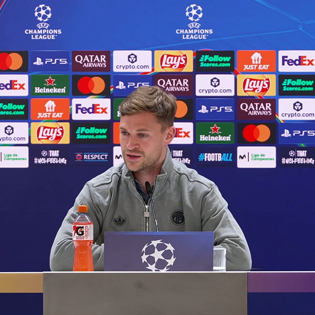 Joshua Kimmich atendió a los medios de comunicación en la sala de prensa del Santiago Bernabéu antes de medirse al Real Madrid este martes.