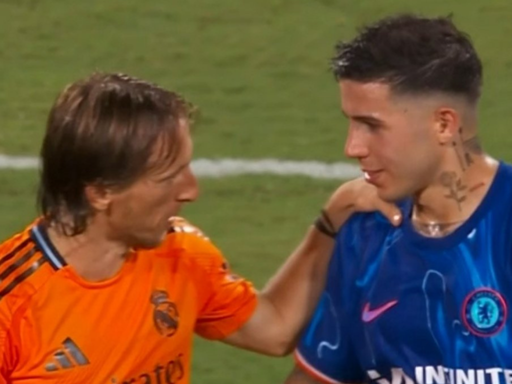 Curiosa conversacion de Enzo con Modric, al finalizar el encuentro, para pedirle la camiseta y llevarse el recuerdo de su ídolo.