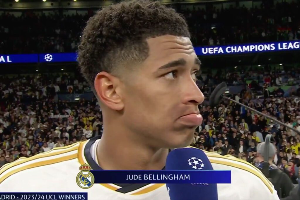 An emotional Jude Bellingham tries to find the words to describe his feelings after winning the Champions League 🏆#UCLfinal pic.twitter.com/byHVn8IzXl