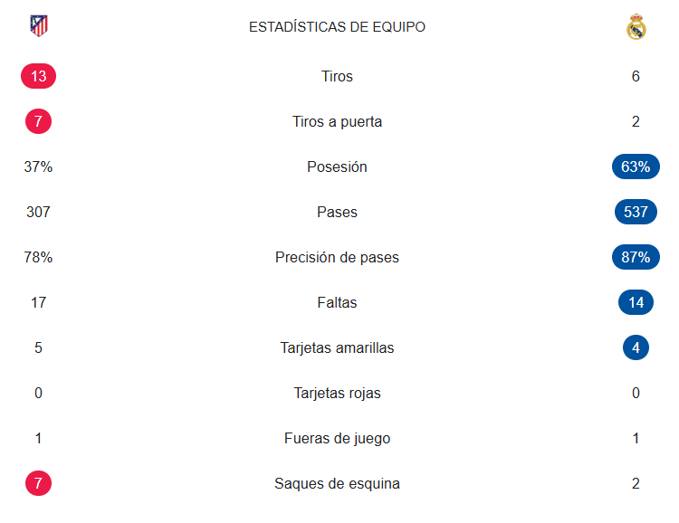 El Real Madrid visitaba al Atlético de Madrid en el Riyadh Air Metropolitano y disputaba su primer derbi del curso. Este es el resumen, en datos, sobre el encuentro: