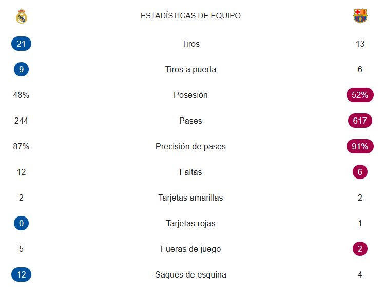 El Real Madrid-FC Barcelona, desde el prisma del análisis, dejó los siguientes datos y estadísticas en el Bernabéu.