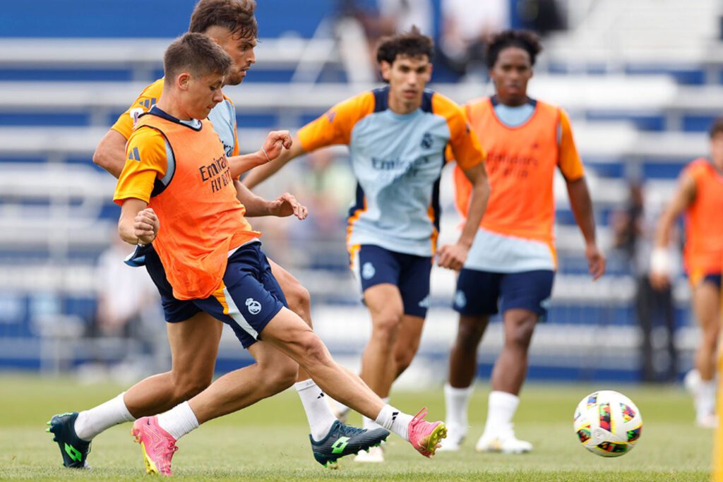 Carlo Ancelotti llevó a cabo el primer entrenamiento en la Universidad de Illinois en Estados Unidos y lo hizo mostrando algunas posibles pistas del once titular que podría sacar frente al Milan.