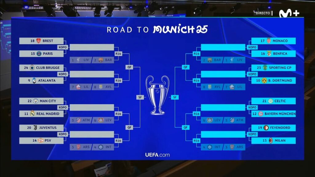 La Champions League sigue avanzando y a partir del mes de febrero empiezan las eliminatorias. Primero entran en juego los cruces de playoff y así mismo ha quedado distribuido en el sorteo realizado este viernes en Nyon.
