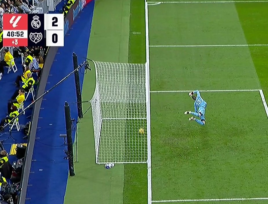 Al borde del descanso llegó el gol del Rayo Vallecano. Un gol «fantasma», pero que entró claramente dentro de la portería. Maeso recibió el aviso y dio por válido el 2-1 de Pedro Díaz.