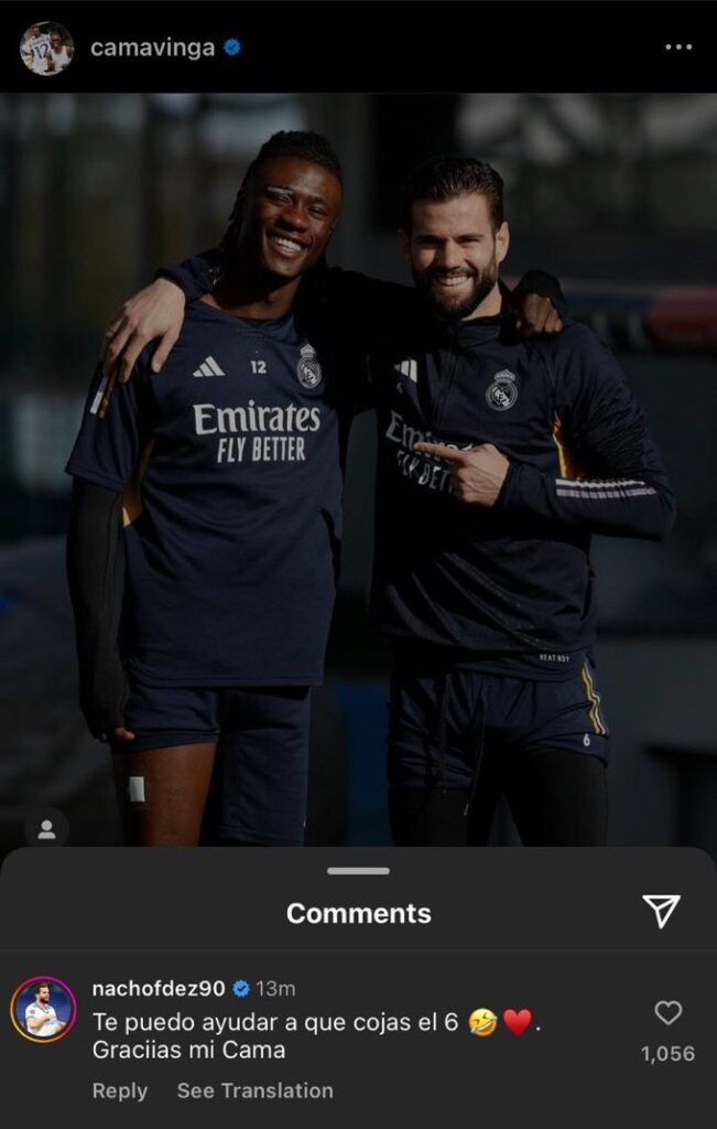 Publicó una foto con Eduardo Camavinga y una frase en la que decía: «Te puedo ayudar a que cojas el 6, mi amigo Cama» junto con emoticonos de una sonrisa y un corazón.