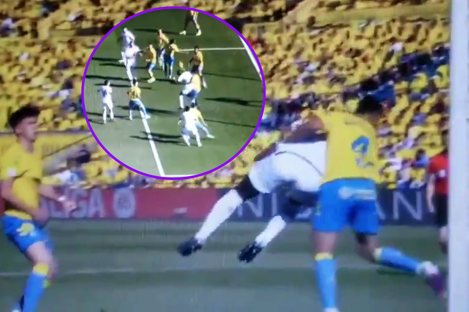 La jugada en cuestión ocurrió en la primera mitad del partido de ayer en Las Palmas. Un córner lanzado por Kroos iba a ser rematado de cabeza por Rüdiger, pero fue agarrado por un defensa del cuadro canario impidiendo al alemán rematar cuando estaba en una posición óptima para marcar un gol.