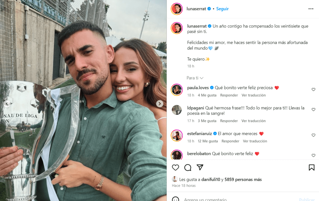 Luna ha expresado en sus redes sociales que “este año contigo ha valido por los veintisiete años que tengo. Te quiero”, confirmando así su relación con Dani Ceballos. Este verano, la pareja fue vista junta en un viaje a Dubái, donde ambos publicaron fotos en sus redes sociales.