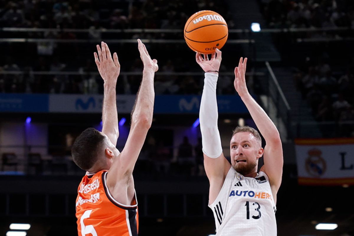 El Real Madrid logró el primer punto de la final de la Liga Endesa tras imponerse a un combativo Valencia Basket en un partido muy igualado que se rompió en el último cuarto. Destacaron especialmente Andrés Feliz, que fue el mejor del partido con 20 puntos, y Walter Tavares, que firmó 15 puntos y dominó la pintura.
