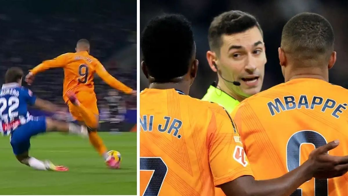 Carlos Romero pudo acabar con la carrera de Kylian Mbappé, en una falta durísima durante el Espanyol-Real Madrid, y debió ser expulsado. Muñiz Ruiz e Iglesias...