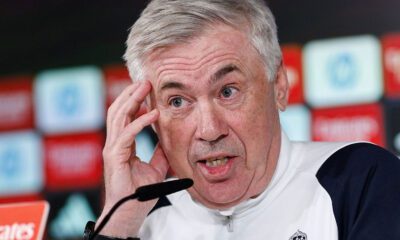 Carlo Ancelotti habla antes de visitar el estadio Nuevo Los Cármenes para jugar contra el Granada tras ser campeones de Liga de manera matemática y pasar...