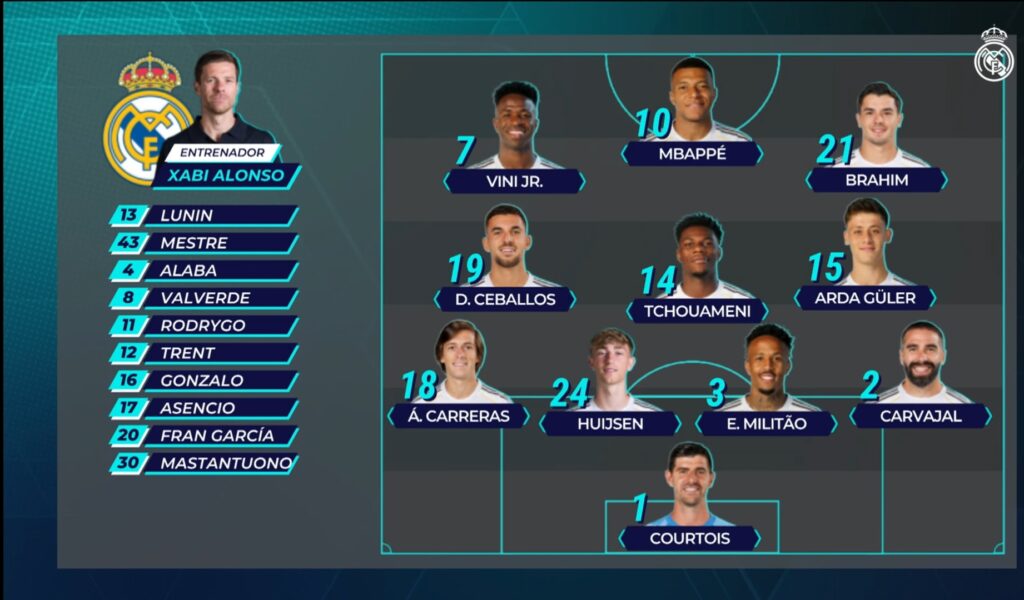 Vini Jr. volvió a ser titular tras recuperar su mejor nivel con goles y asistencias, mientras que Brahim Díaz también le gana la partida a Rodrygo por el costado diestro.