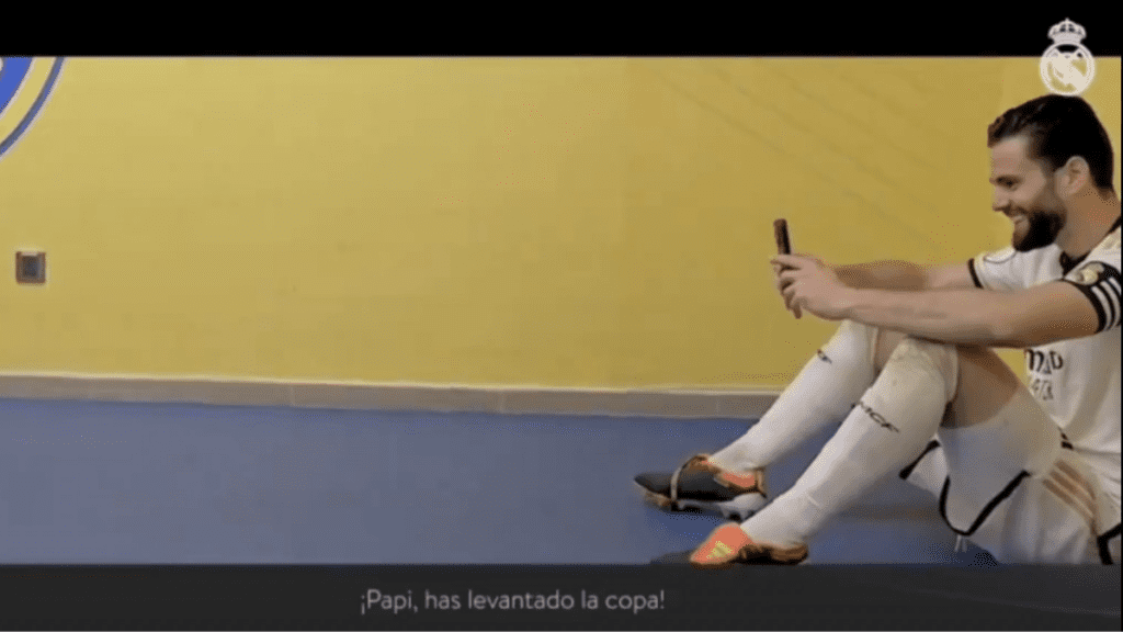 Nacho Fernández levantó su primer título con la camiseta del Real Madrid y vivió un momento muy emotivo al acabar. En los vestuarios hizo una videollamada muy especial, a su familia. «Papi has levantado la copa», le dijo uno de sus hijos.