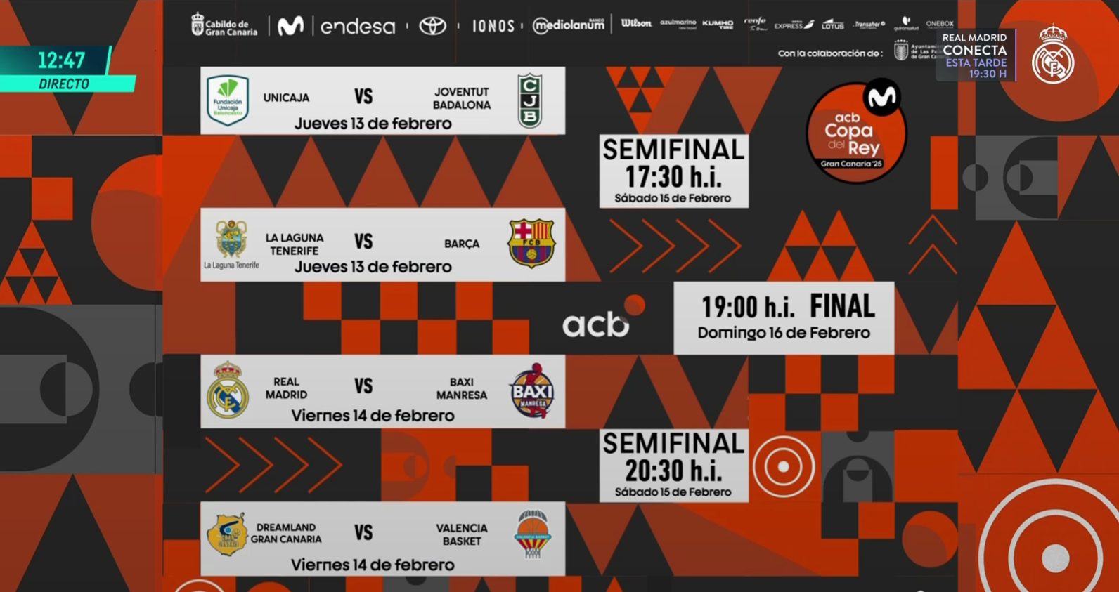 Las semifinales se jugarán el sábado 15 de febrero y la final el domingo 16 de febrero. Con estos emparejamientos, el Madrid evita al Barça hasta la final.