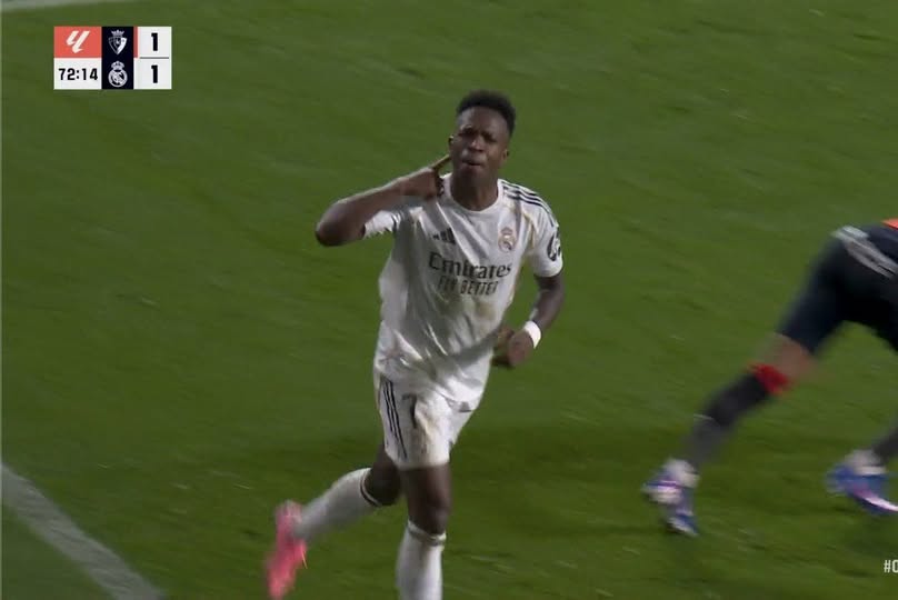 Vinicius Júnior fue uno de los grandes protagonistas en El Sadar y fue el autor del gol, el del 1-1 ante Osasuna, que permitía el empate...