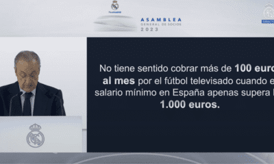 Florentino Pérez llevó a cabo la Asamblea de Socios y Compromisarios en el Pabellón de la Ciudad Real Madrid de Valdebebas. La sala, abarrotada de socios,...