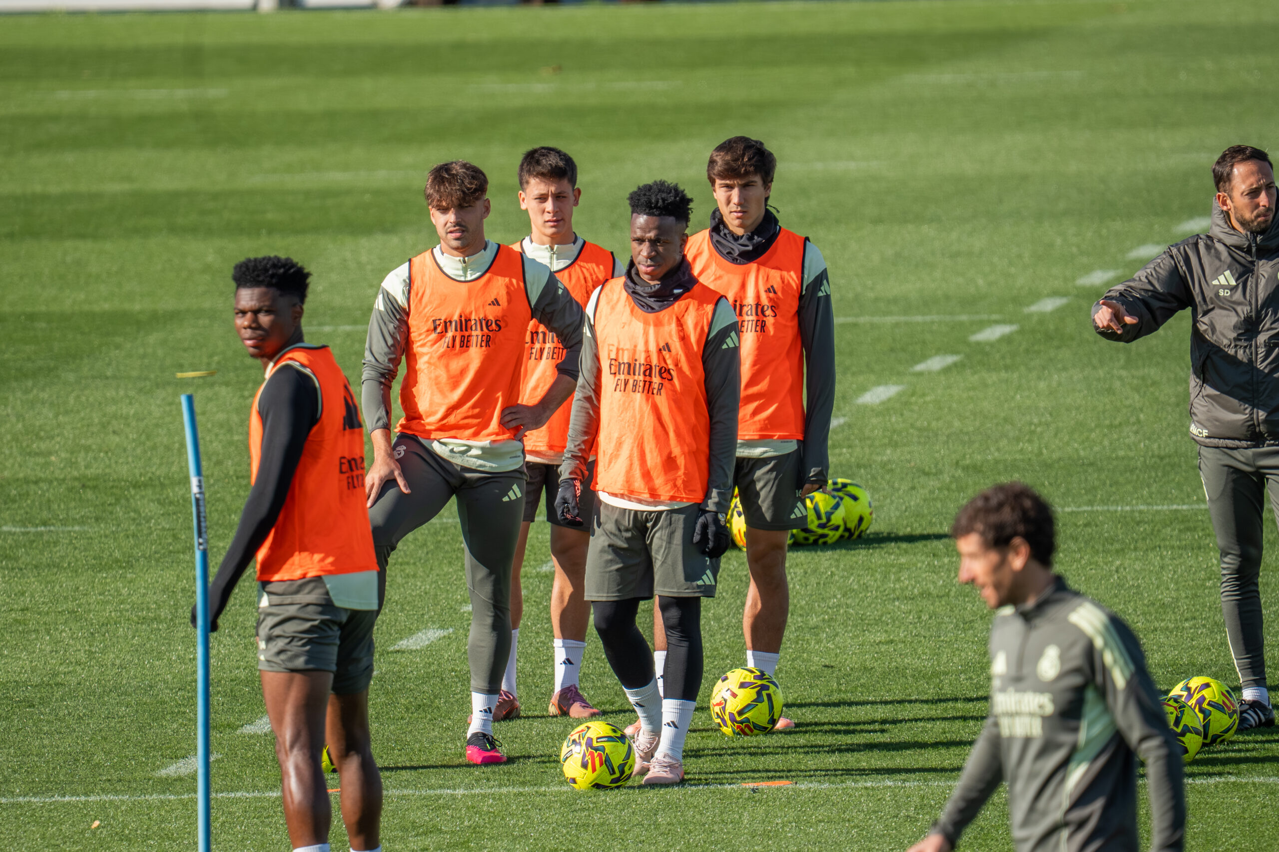 Las ausencias fueron las de Carvajal, Militao, Alaba y Mastantuono que hicieron trabajo en solitario, tanto en los campos anexos como en el interior de las instalaciones.