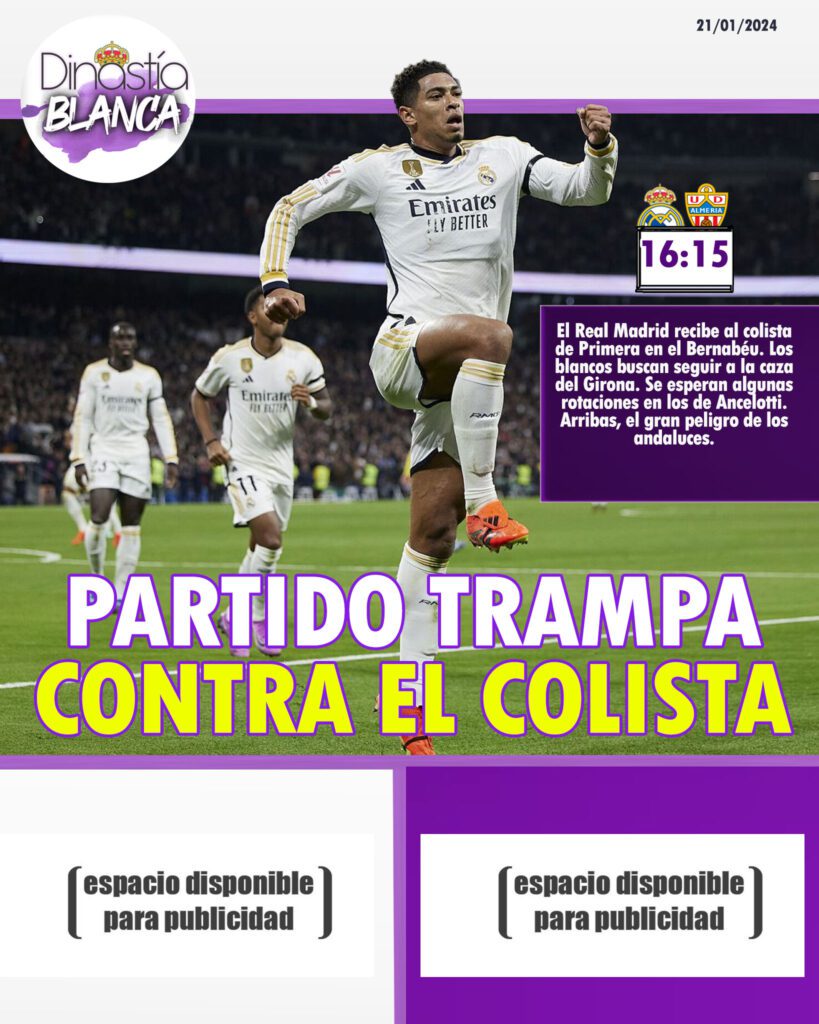 El Almería llega a este partido después de empatar 0-0 ante el líder de la Liga, el Girona. El Real Madrid se juega ese liderato que le cedió a los de Míchel por ir a la Supercopa de Arabia.