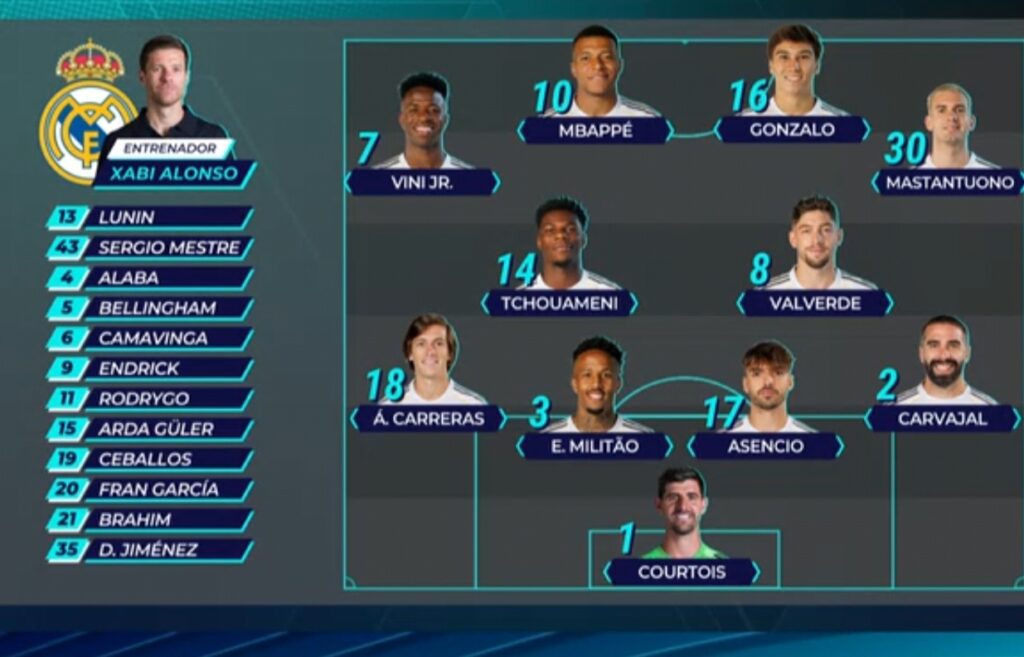 Los de Xabi Alonso lo afrontarán con Bellingham y Camavinga ya integrados en el equipo, además de contar con Endrick – que ya tiene el alta competitiva de los servicios médicos – con el objetivo de sumar tres nuevos puntos y no parar su racha de victorias en el comienzo de la temporada.