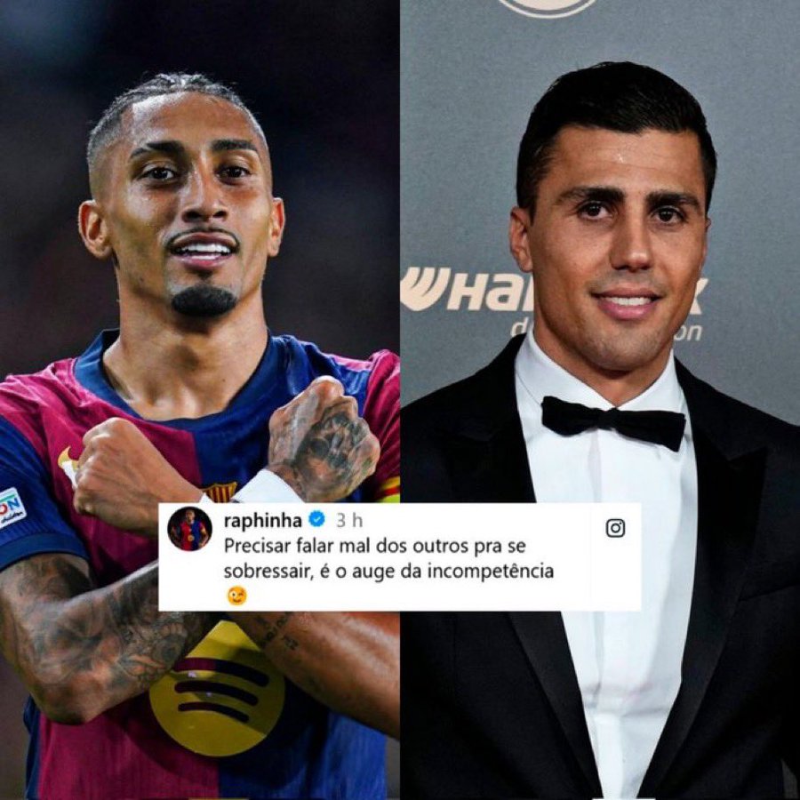El brasileño Raphinha ha encendido las redes sociales con una publicación que seguramente generará tensiones en el entorno del FC Barcelona. El delantero escribió: «Hablar mal de los demás para sobresalir, es el colmo de la incompetencia», para responder a una imagen de Rodri durante la gala del Balón de Oro. Aunque el jugador no especificó a quién iba dirigida su frase, el contexto parece apuntar hacia la reciente controversia relacionada con la celebración del premio por parte del jugador del Manchester City.