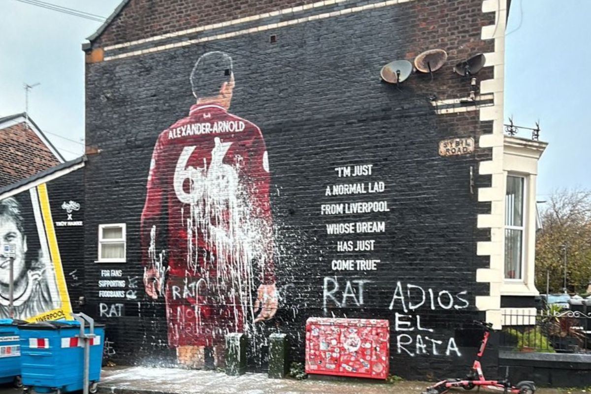 «Rata, rata, rata…», es lo que ha aparecido pintado en blanco, en esa calle de Liverpool que no perdona a Trent por irse este verano al Real Madrid. «Adiós, el rata», escribieron algunos aficionados rencorosos del Liverpool.