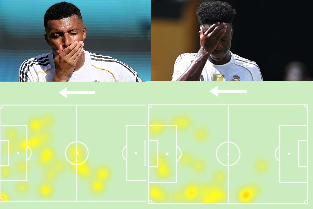 Vinicius apenas jugó 65 minutos, y su hoja de ruta fue casi invisible: 21 toques en total, ningún tiro a puerta, solo un regate intentado. No generó ni una ocasión clara, no apareció en zona de peligro y su mapa de calor lo sitúa casi siempre en campo propio, bajando a recibir sin profundidad.