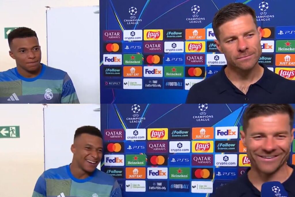 Xabi Alonso habló en zona mixta y atendió a Movistar Liga de Campeones para valorar la victoria del Real Madrid ante el Marsella. Tuvo un encontronazo muy bonito con Kylian Mbappé y le llenó de elogios a pocos metros de su figura.
