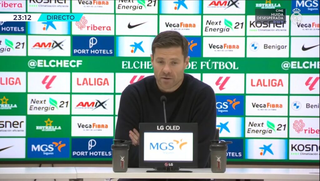 El entrenador del Real Madrid, Xabi Alonso, compareció ante los medios de comunicación tras el empate 2-2 cosechado en el Martínez Valero frente al Elche.