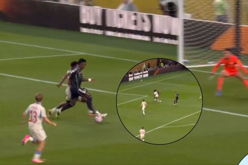 En el 36′, Gonzalo estuvo cerca de rematar un buen centro de Vinicius por la banda derecha y sería en la siguiente cuando el de Río de Janeiro se antojaría como protagonista total en el campo. Vini Jr., en el 39′ aprovechaba un pase en largo, en profundidad, de Jude Bellingham para anotar el 0-1 tras recortar de manera sublime a su defensor. Ahí tuvo el temple que le faltó en la acción anterior y puso por delante al Real Madrid para desatar la tormenta futbolística.